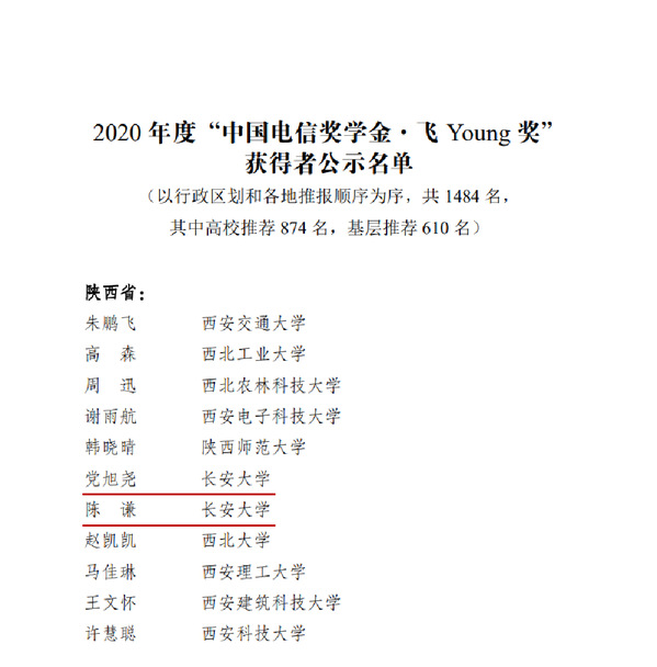 2020年度“中国电信奖学金·飞Young奖”获奖名单