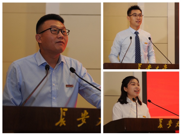 博士生导师、理学院院长、陕西省青年科技新星宋学力教授代表研究生指导教师发言。他结合自己近20年的科研经历和10多年指导学生的心得,对同学们今后的学习生活提建议与期望:坚定理想信念,矢志拼搏奋斗;研读经典,提升科学素养;加强基础科学问题研究,增强科研创新原动力;坚守科研诚信,弘扬科学道德。在校生代表、汽车学院2019级研究生张伟在发言时表示,要牢记习近平总书记在两院院士大会上的嘱托,坚持“以国家命运为己任”,发扬“以爱国主义为底色的科学家精神”,全面提升文化素养,用奋斗去践行中华民族伟大复兴的百年约定!经管学院2021级研究生杜倩代表全体新生向学校庄严承诺:树立明确目标,提升自我价值;心怀科学梦想,树立创新志向;遵守学术规范,践行科研诚信。