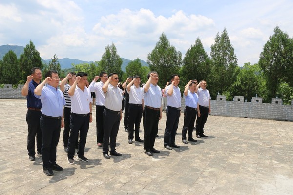 在赵川镇前坡岭战斗遗址,陈志坚与在场师生、商南县干部一起向革命先烈敬献了鲜花,认真聆听讲解员解说那段可歌可泣的历史,深切缅怀先烈,并在纪念碑前重温了入党誓词。陈志坚在现场为正在赵川镇开展写生实践的同学们讲授了一堂微党课,勉励同学们传承弘扬革命先烈坚如磐石的理想信念,发扬不怕苦、不畏艰险,迎难而上的伟大精神,学习他们百折不挠、敢于胜利的英雄气概。
