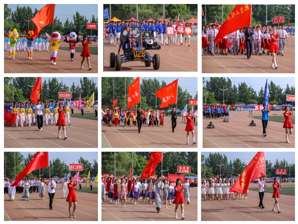 上午9时,开幕式正式开始。伴随着慷慨激昂的《运动员进行曲》,在国旗、奥林匹克旗、校旗的引导下,彩旗方阵、裁判员方阵、全校22个代表队方阵,迈着矫健的步伐,喊着嘹亮的口号,依次入场。