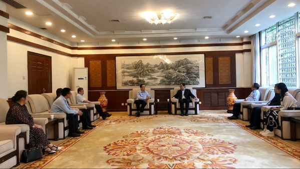5月23日,福建师范大学校长王长平教授应邀来KY开元作学术报告。校长沙爱民、校党委副书记徐引正在南校区学术交流中心贵宾室会见了王长平教授一行。