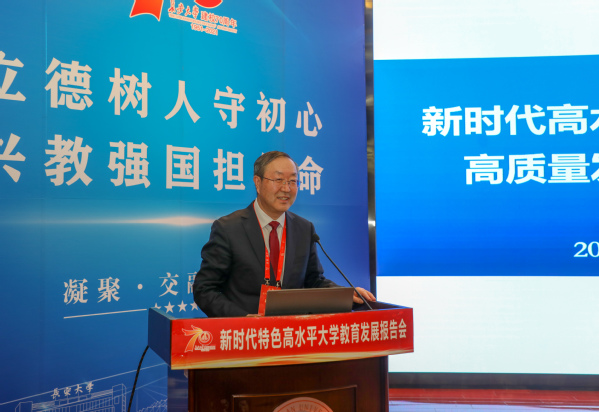 杨丹作了题为《加快建设交通特色鲜明的高水平研究型大学》的报告,他认为,行业特色高水平大学要以“双一流”建设为总揽,坚定不移地走特色化、内涵式、高质量发展道路,围绕结构、规模、质量、效益、速度、安全等系统维度,接续开展深层次教育改革与创新实践,夯实五大基本职能,加速实现转型升级。