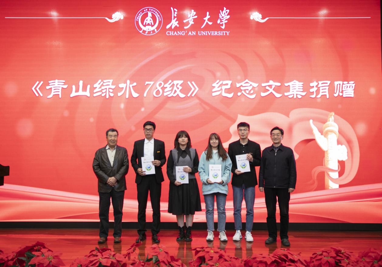 论坛最后举行了《青山绿水78级毕业39周年纪念文集》捐赠仪式,由纪念文集总编辑、78级校友许延浪教授介绍了文集编撰和“向母校致敬”的情怀,由毛景文院士和78级校友代表冯涛教授向学校、师生代表赠送了纪念文集。