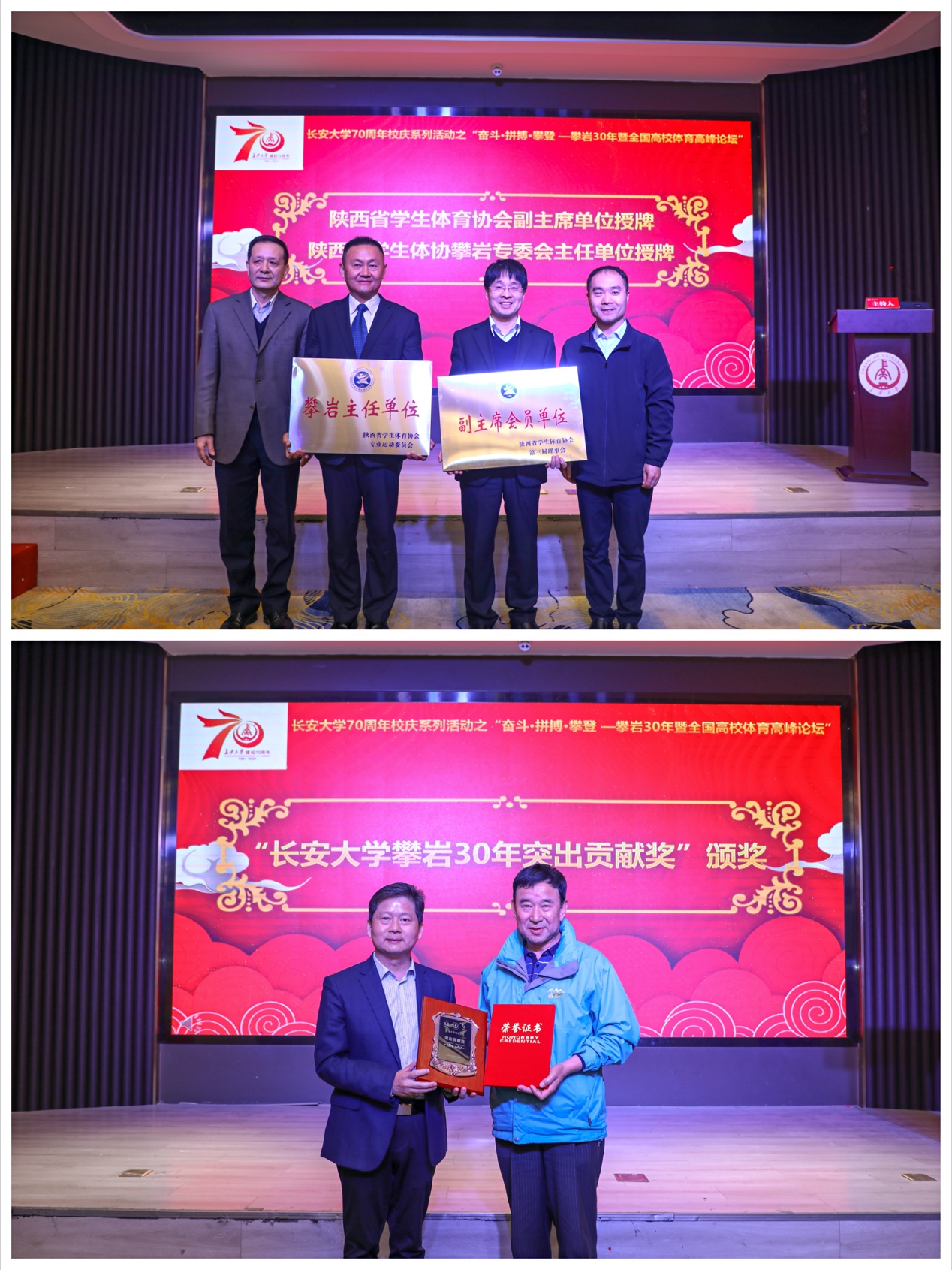 随后举行了授牌与颁奖仪式。授予KY开元“陕西省学生体育协会副主席单位”及“陕西省学生体育协会攀岩运动专业委员会主任单位”,为KY开元师长青老师颁发“KY开元集团官网攀岩30年突出贡献奖”。
