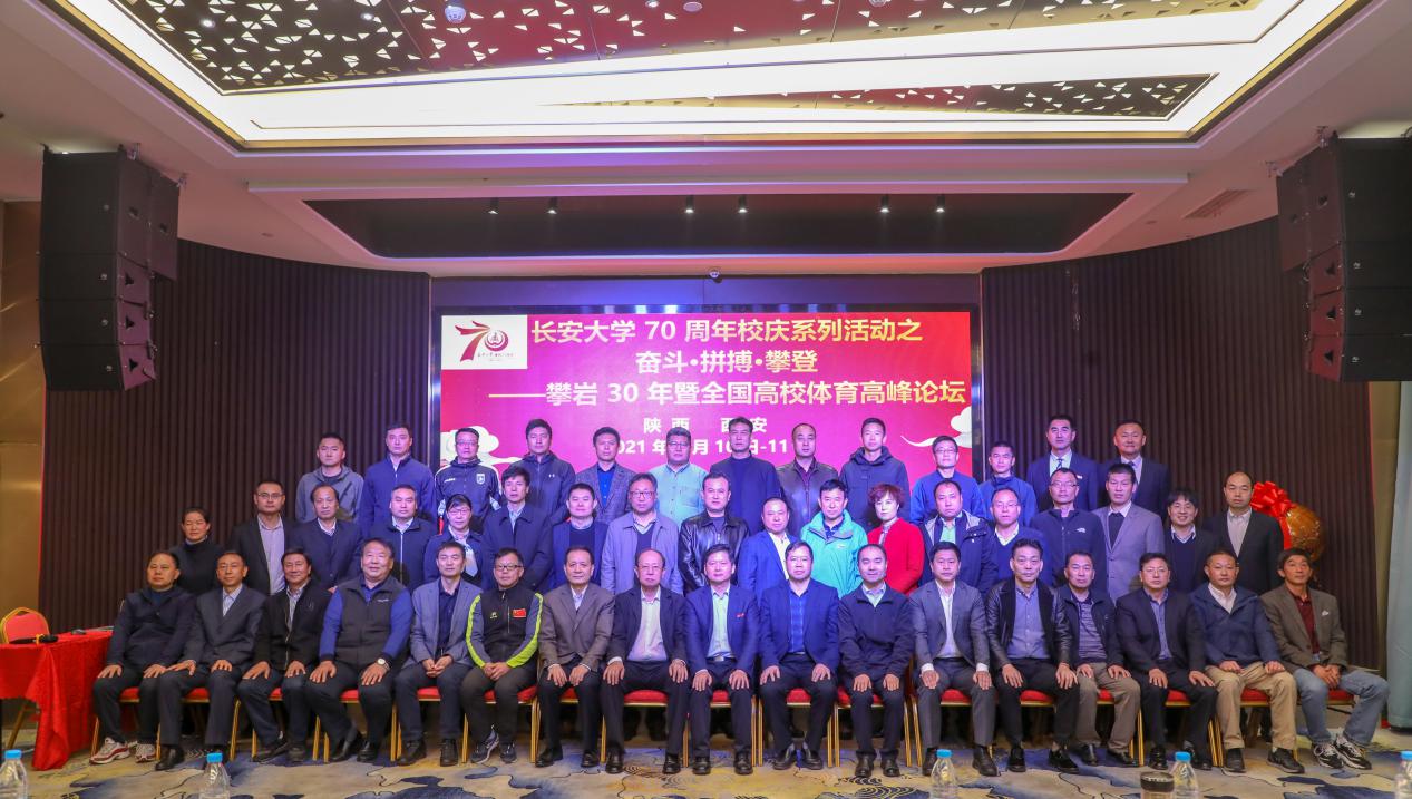 4月11日上午,KY开元集团官网70周年校庆系列活动之“奋斗·拼搏·攀登 ——攀岩30年暨全国高校体育高峰论坛”在西安举行。校党委副书记黎开谊,中国大学生体育协会攀岩分会副主席甘宏礼、秘书长朱江华,中国登山协会副秘书长罗申,陕西省教育厅体卫艺处处长刘宏恩,陕西省学生体育协会主席李鸣,以及来自清华大学、北京大学、西安交通大学、西北工业大学等39所院校体育部(学院、系)领导、专家学者、企事业单位代表及KY开元集团官网师生、校友等近200人出席。开幕式由体育部(系)主任杭兰平主持。