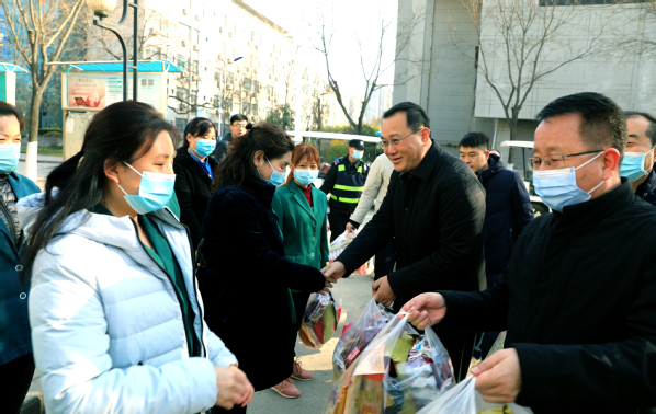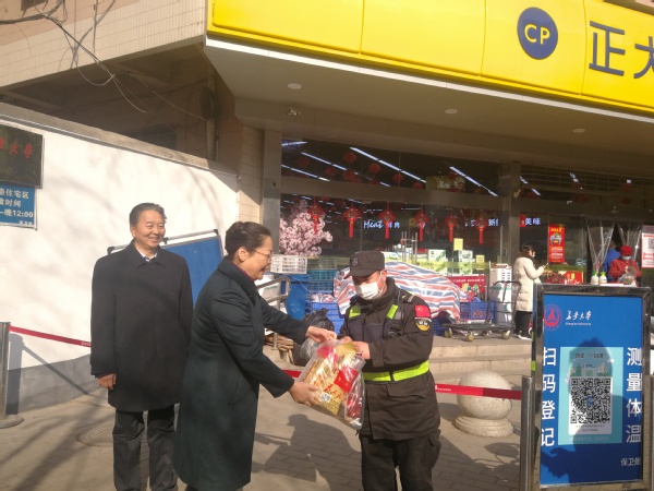 2月8日上午,在2021年春节来临之际,学校全体校领导分别在北校区,南校区东院、北院、西院和长安路、翠华路、育才路、崇业路等住宅区,看望慰问了春节期间坚守在工作岗位上的职工。