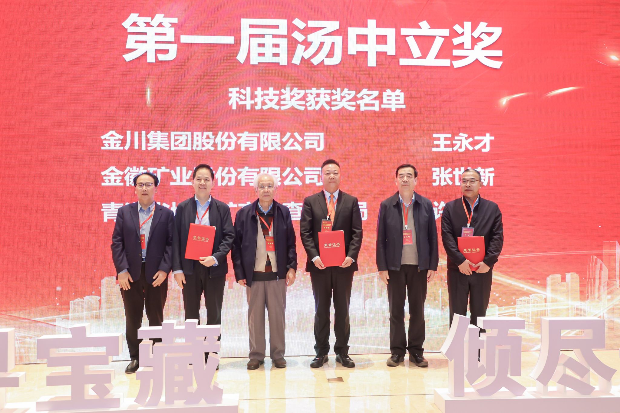 汤中立奖今年是第一届评选,共有三名优秀地质矿产工作者和六名优秀学生分获“汤中立地质科技奖”和“汤中立优秀学生奖”。与会院士为获奖人员颁奖。