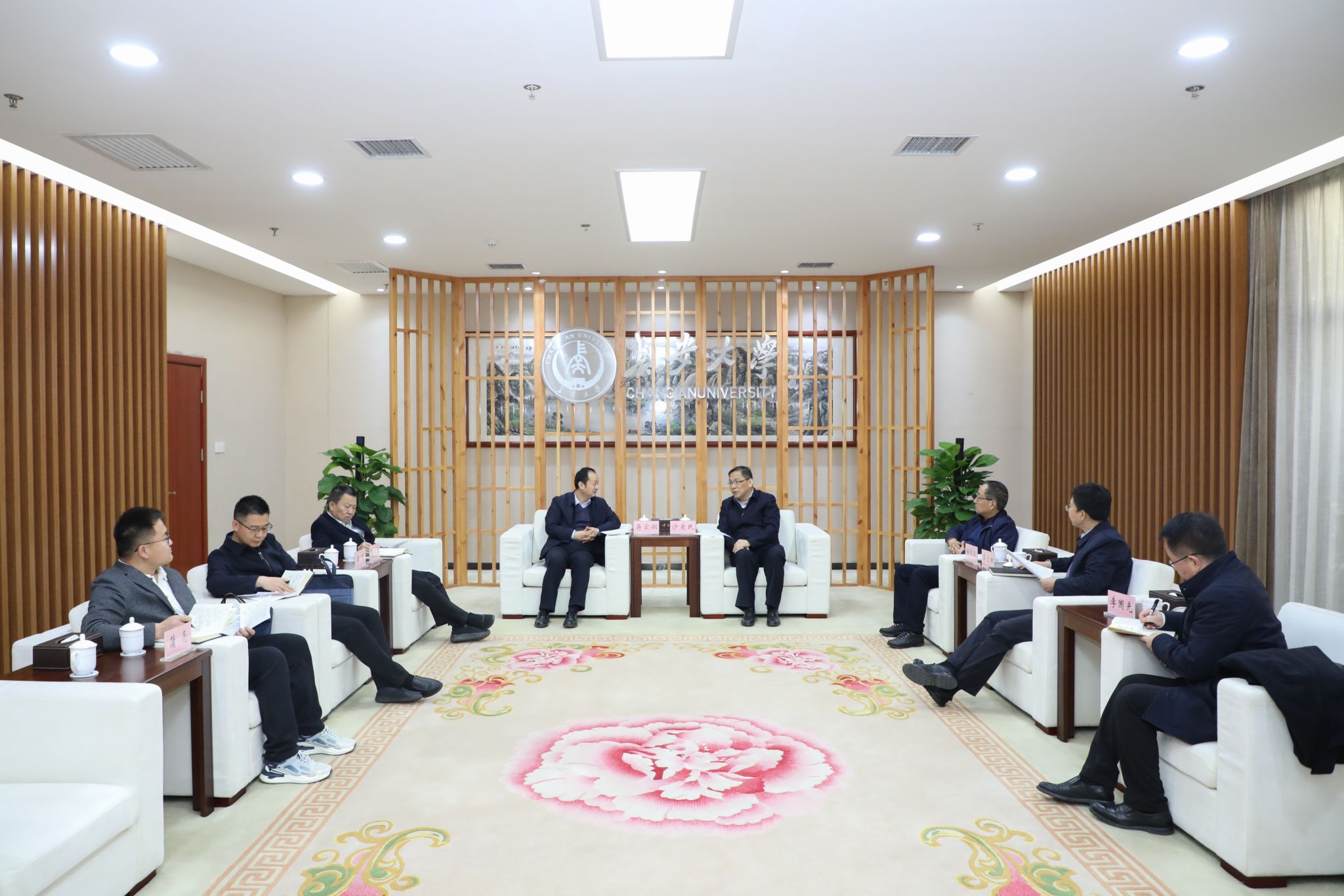 沙爱民代表学校对蒋宏潮一行表示热烈欢迎,就学校基本情况进行了简要介绍。他表示,作为扎根西部的行业特色高校,学校在交通运输、国土资源、城乡建设三大领域有着深厚积淀,为服务国家重大战略和区域经济社会发展提供了有力支撑。长期以来,学校通过选派援疆干部、银龄教师,深化科教合作、成果服务等,与新疆建立了密切的校地合作关系,今后将进一步发挥优势、突出特色,为助力新时代教育援疆工作作出积极贡献。