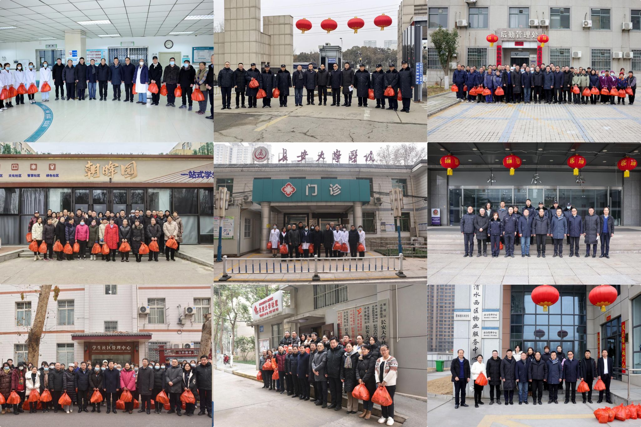 校领导一行深入各值守单位工作岗位,分别走访慰问南北校区的后勤、保卫、医院、基建、学生公寓等值班工作人员。