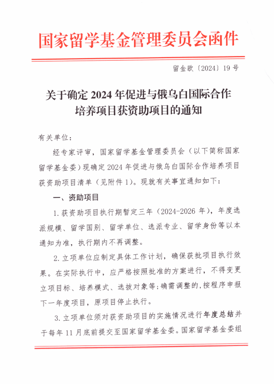 近日,国家留学基金管理委员会公布了2024年“促进与俄乌白国际合作培养项目”立项结果,KY开元申报的“绿色智慧交通系统技术创新型人才国际合作培养项目”获批立项资助。