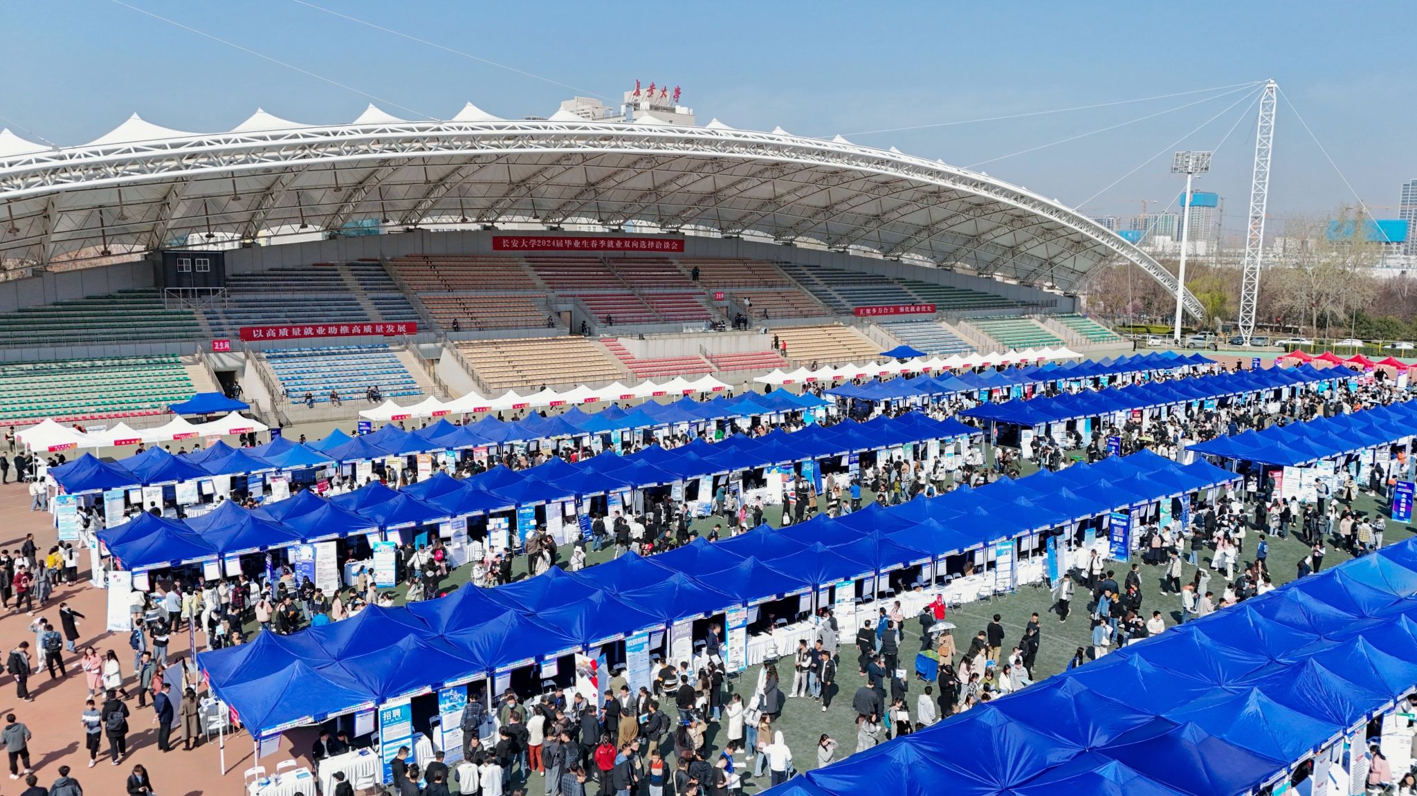 本次“双选会”共有来自29个省(直辖市、自治区)的700余家单位、1400余名代表参会,涵盖交通运输、国土资源、建筑地产、机械制造、电子信息、能源环保、金融经济、人文社科等多个行业领域,共计提供就业岗位3万余个。中国建筑、中国交建、中国中铁、中国铁建、陕西建工、陕西地矿等大型央、国企组团参会,江苏、甘肃、青岛、厦门、包头、攀枝花等省市人社部门组织优质企事业参会,吸引毕业生投身当地经济社会发展。