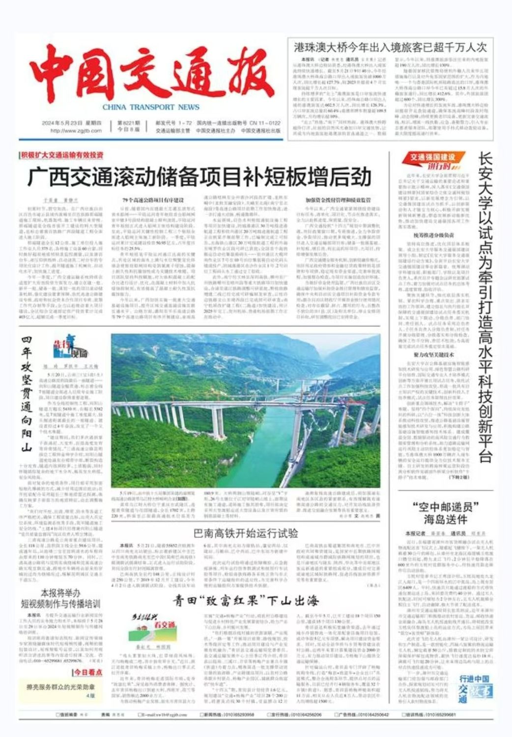 5月23日,《中国交通报》头版以《KY开元集团官网以试点为牵引打造高水平科技创新平台》为题,报道KY开元交通强国试点建设成果。报道全文转载如下: