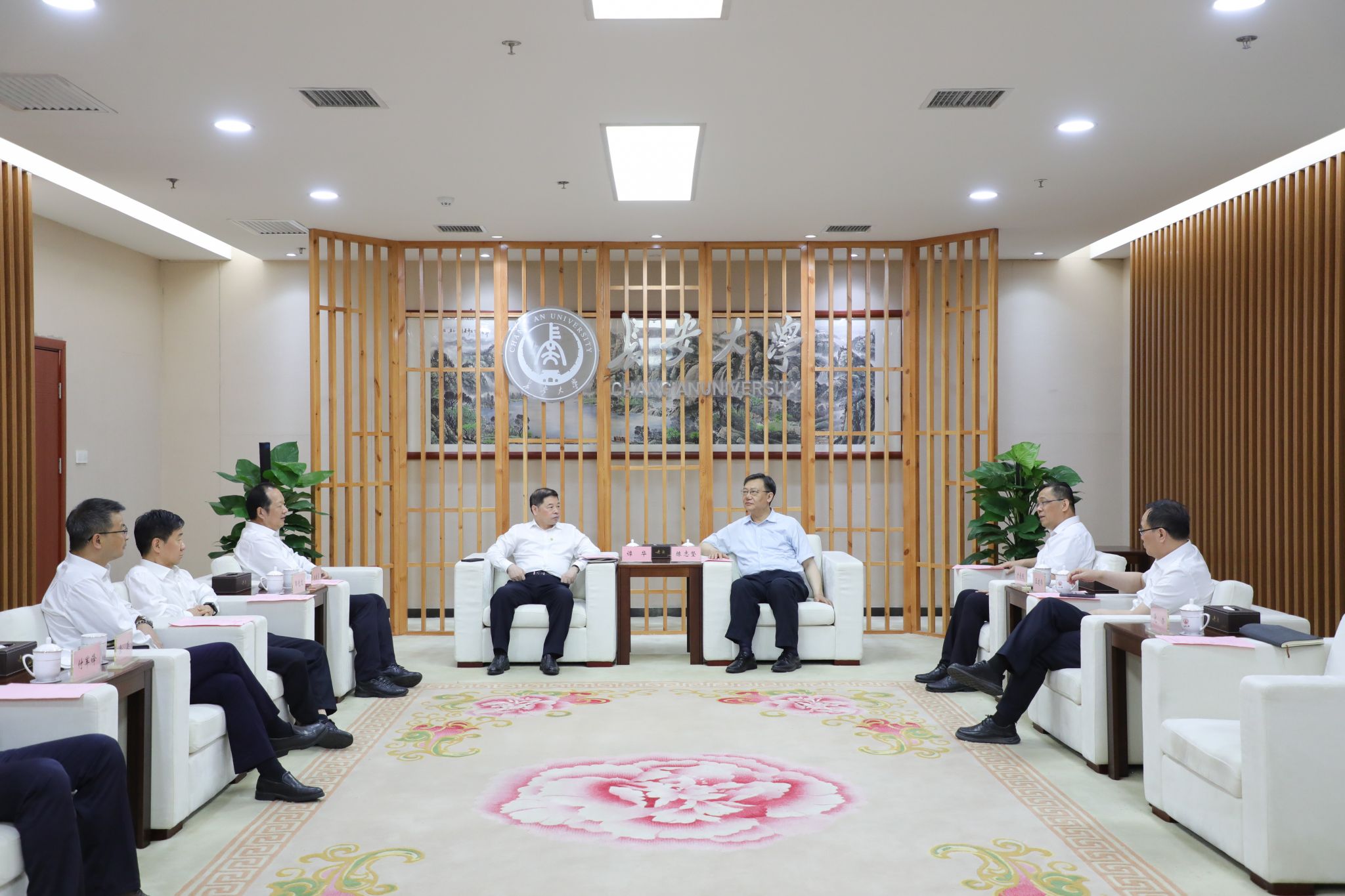 5月24日下午,中国能建葛洲坝集团党委书记、董事长谭华一行来校交流,KY开元党委书记陈志坚、校长沙爱民在北校区北辰楼贵宾厅会见了谭华一行,副校长王建伟陪同会见。