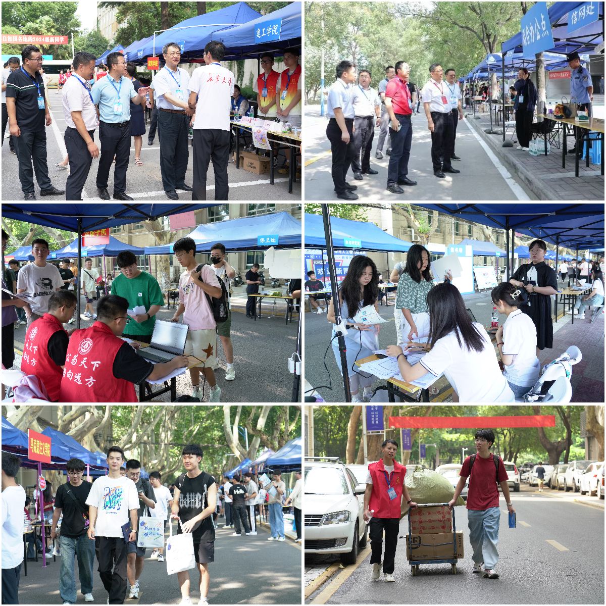 迎新期间,相关校领导及相关职能部门负责人前往迎新点了解学院迎新工作的开展情况,欢迎前来报道的新生同学,慰问现场服务的师生。各单位、学院协同联动、密切配合,开设“绿色通道”帮助家庭经济困难学生先办理报到手续,通过设置签名墙、张贴横幅标语、发放专属纪念品等方式营造温馨的报到氛围,报到流程高效便捷,现场井然有序。