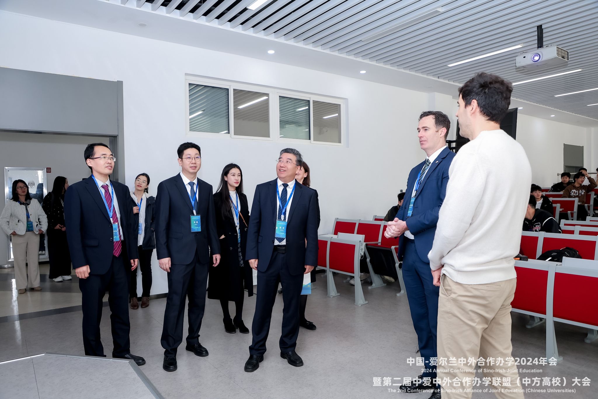 会后,睦百瑞一行参观了长安都柏林国际交通学院,详细了解了学院办学情况与办学成果,并走进课堂与学院师生进行了交流。