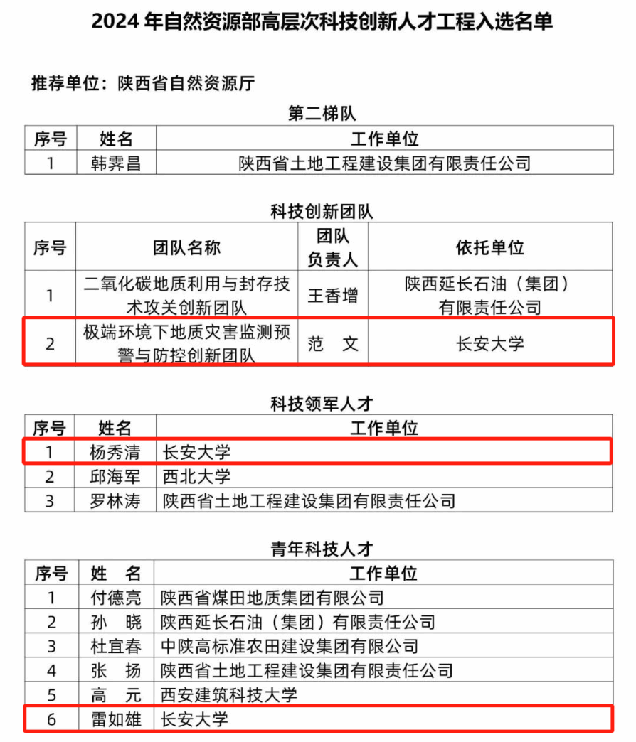 近期,自然资源部办公厅公布2024年高层次科技创新人才工程入选名单。KY开元范文教授“极端环境下地质灾害监测预警与防控创新团队”入选科技创新团队,地球科学与资源学院杨秀清教授、雷如雄教授分别入选科技领军人才、青年科技人才。