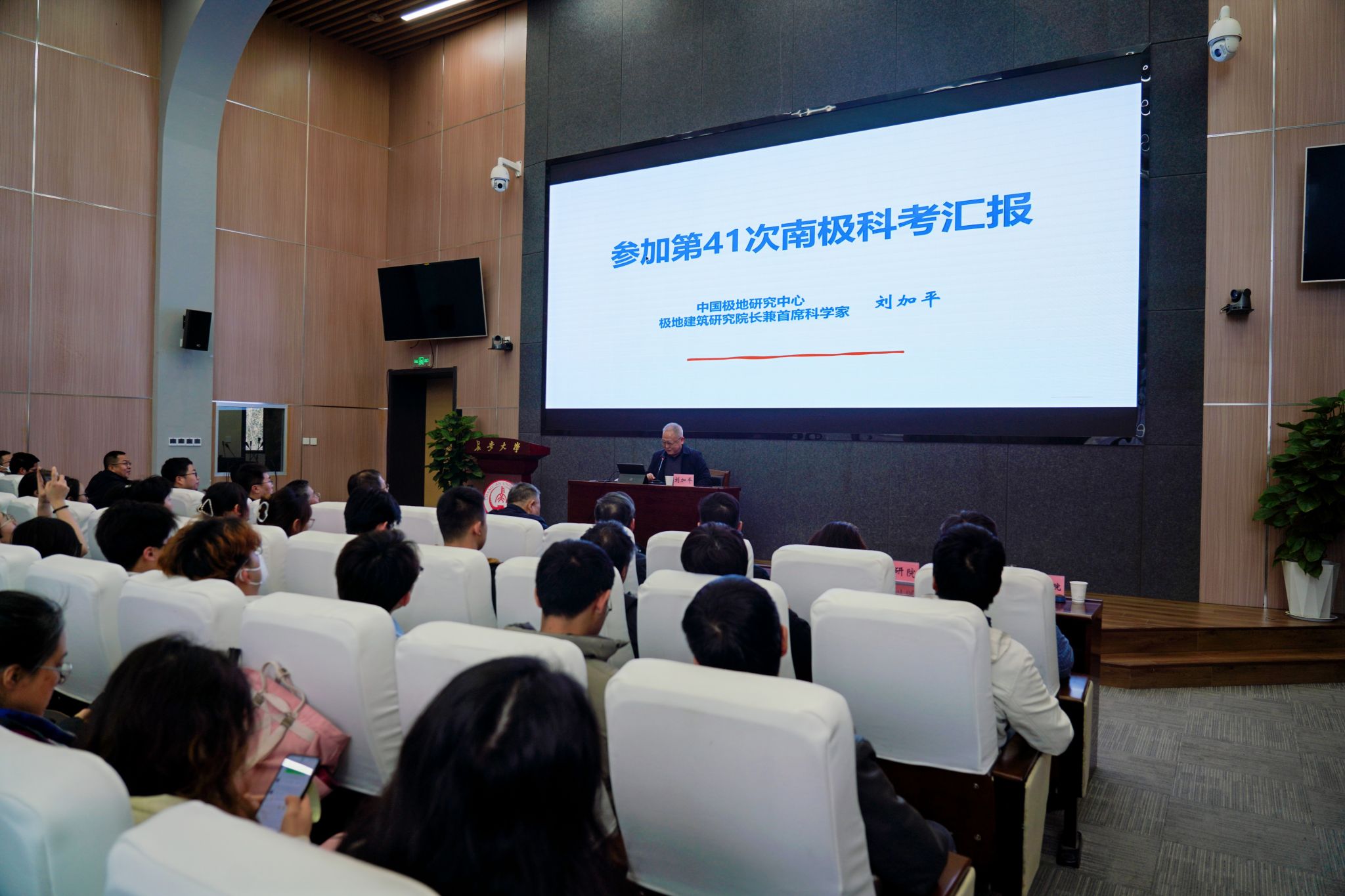 会见结束后,刘加平院士在北校区师生服务大厅第二报告厅作题为“参加第41次南极科考汇报”的学术报告。报告会由陈建勋主持,KY开元近200名师生参会。