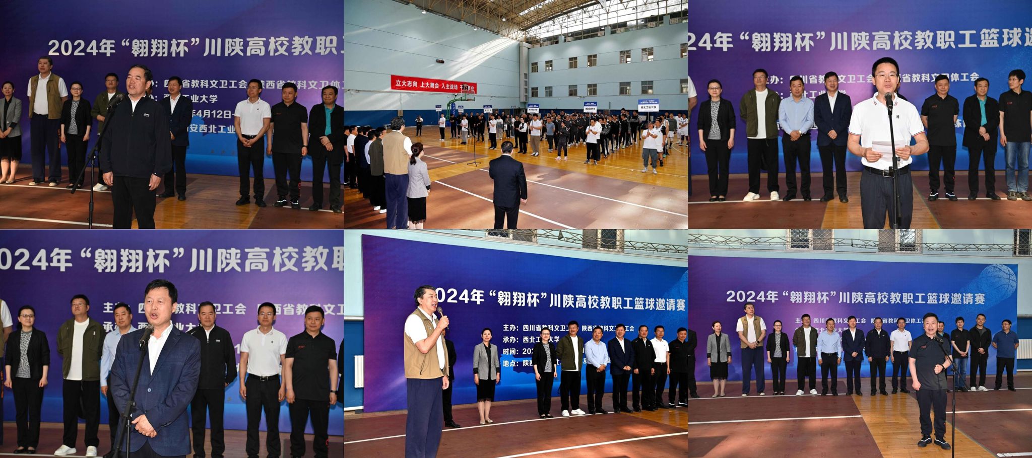 4月13日上午举行了邀请赛开幕式,西北工业大学党委副书记、工会主席陈建有致欢迎辞。黄先明、徐富权,陕西省篮球协会主席王立彬和六所高校工会负责人等出席开幕式。