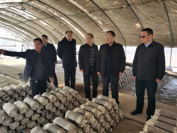 调研青山社区百万袋木耳平菇基地建设情况