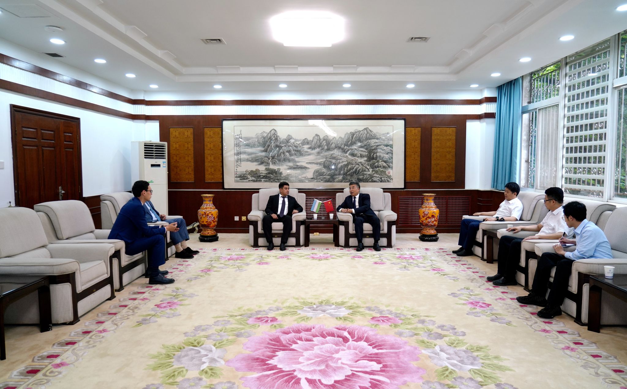 伊尔马托夫·布尼奥德一行参观了KY开元道路基础设施数字化教育部工程研究中心,并就道路交通领域的研究与发展等开展交流调研。会上,双方相关人员就交通大数据、基础设施空间数字化、智能道路养护等领域进行了深入交流。