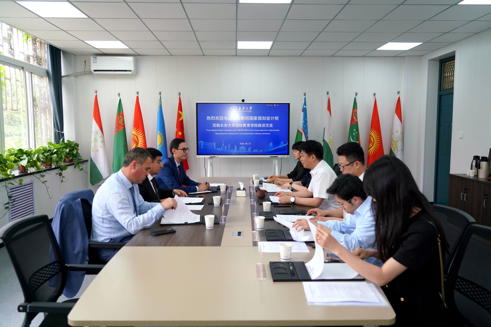 范文对乌兹别克斯坦国家规划设计院院长一行的来访表示热烈欢迎。他表示,中乌友谊源远流长,有着深厚的友谊和合作基础。他就学校的发展历程、学科特色、教学成就及国际交流等进行了详细介绍,并重点阐述了学校在交通基础建设等领域的科研成果和先进技术。他强调,学校高度重视国际交流与合作,期望与乌兹别克斯坦国家规划设计院继续深化合作,特别是在推动中国-中亚五国交通基础建设领域人才培养联盟建设方面发挥更大作用,共同促进两国乃至中国-中亚地区的繁荣发展。