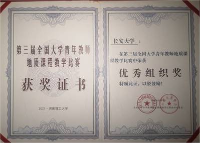 全国大学青年教师地质课程教学比赛是“全国高校教师教学竞赛排行榜”赛事之一。为推动地质课程教学改革,提升青年教师教学能力和业务水平搭建了良好平台,学校高度重视此次竞赛工作,积极筹划,组织开展了校内选拔赛及打磨指导,从10位报名教师中择优推荐3位参加全国赛角逐,并最终取得了优异成绩。学校将进一步夯实教师发展支持服务体系,全力支持教师参加各级各类教学竞赛,充分发挥教学竞赛示范带动作用,推动课程教学改革创新,持续提升教师教学水平,不断提高人才培养质量。