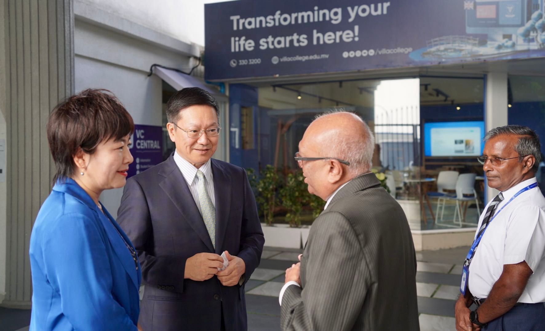 11月24日,教育部中外语言交流合作中心(以下简称“语合中心”)副主任胡志平、亚非处处长王会昌等一行五人访问马尔代夫维拉学院汉语中心,深入了解汉语教学与文化推广情况,进一步推动中马语言交流与教育合作。维拉学院校长安瓦尔博士,汉语中心中方主任马越晗,维拉学院执行董事萨伊德共同会见。