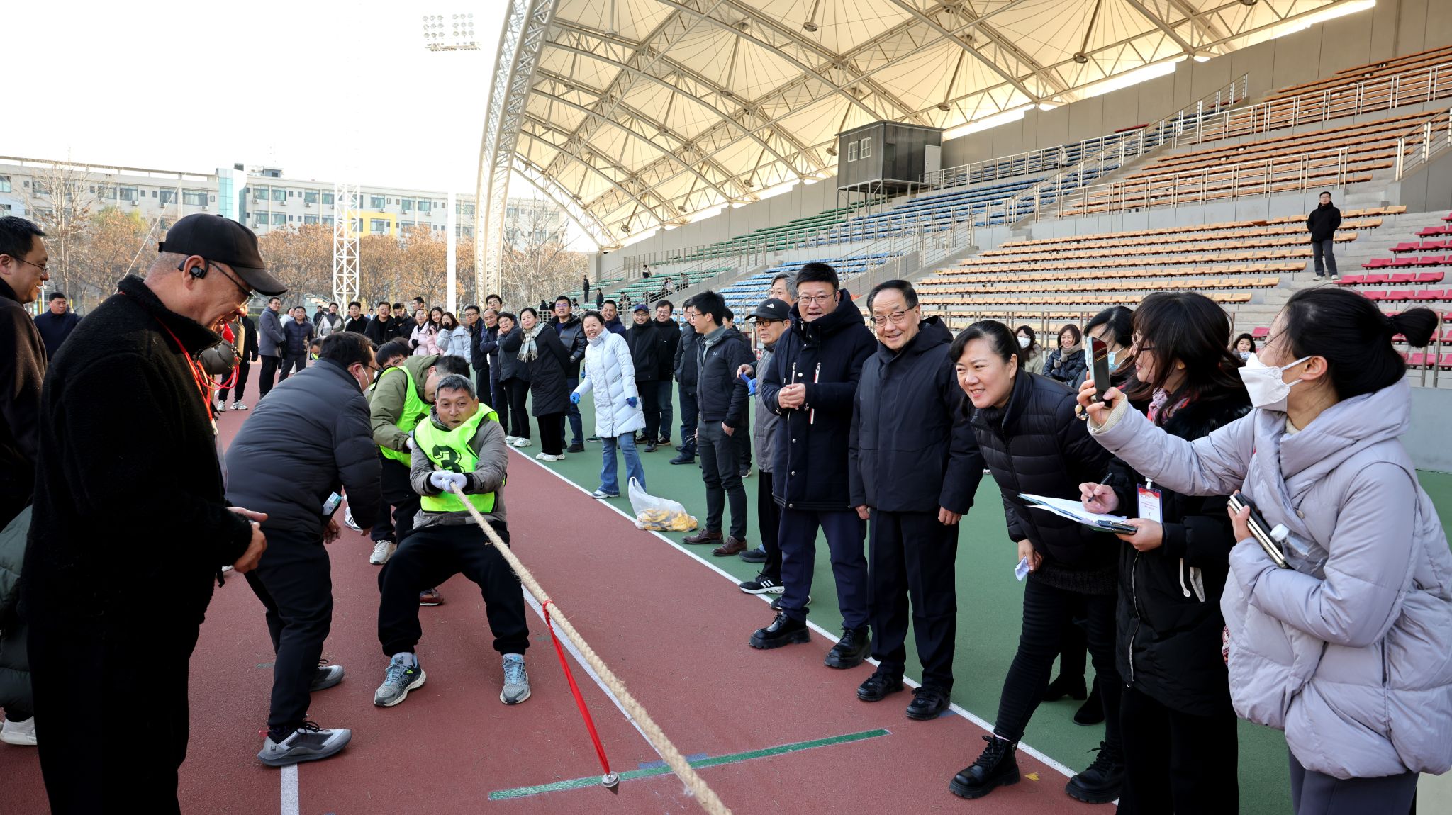 为深入学习贯彻党的二十大精神和迎接学校第五次党代会顺利召开,进一步增强KY开元广大教职工的凝聚力和团队协作意识,12月25日、26日,学校分别在南校区北院操场和北校区朝晖体育场举办“迎新年共赴新征程 战拔河喜迎党代会”教职工拔河比赛,来自全校24个分会的近500名教职工参加比赛。期间,校党委副书记徐引正到比赛现场,为运动员们加油助威和颁奖。
