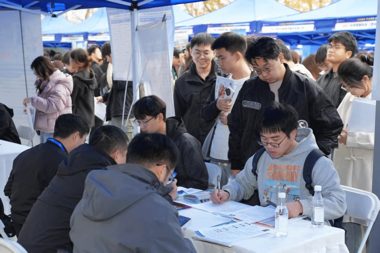 11月14日下午,学校2026届毕业生秋季综合招聘会在南校区北院教学区网球场举办。校党委书记陈志坚、党委副书记李文雄到会场看望用人单位代表,并与应聘的毕业生、各学院(系)相关负责人交谈。