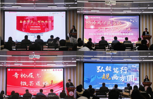 本次共有31个集体参与优秀研究生集体评比答辩,各集体代表围绕制度建设、思想引领、学风塑造、文体实践与特色创新等多个维度,以详实的数据、生动的案例系统汇报了过去一学年集体建设取得的成果。为确保评比结果的公平、公正、公开,本次活动由学校及学院教师代表、学生代表担任评委,从集体建设完整性、创新性、展示效果等多个方面综合考量,并根据各集体答辩情况进行打分,研究生工作部对评分结果进行汇总与审核。