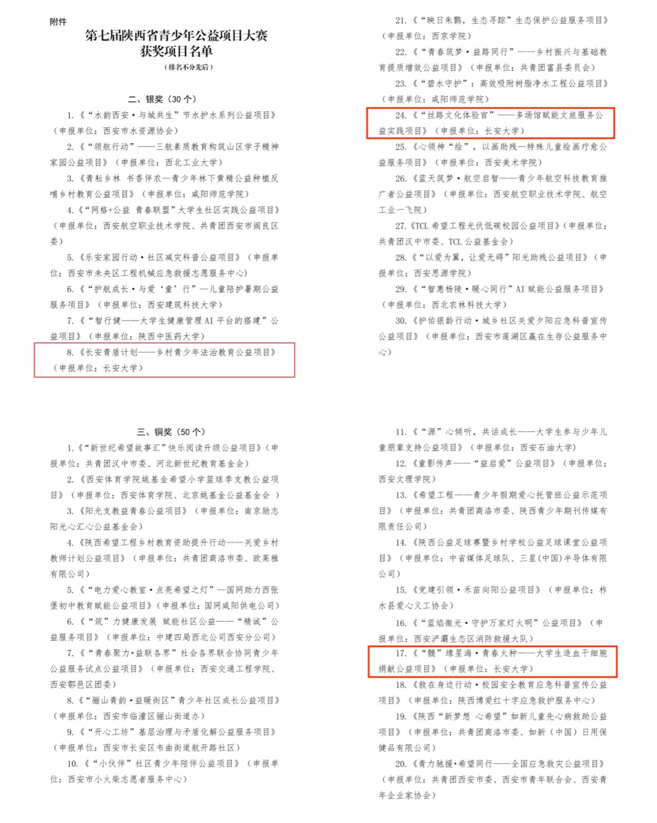 近日,由共青团陕西省委、中共陕西省委文明办、中共陕西省委社会工作部、中共陕西省委教育工委等部门联合举办的“第七届陕西省青少年公益项目大赛”落幕。KY开元推报的项目获银奖2项、铜奖1项,取得学校在公益项目大赛中的新突破。