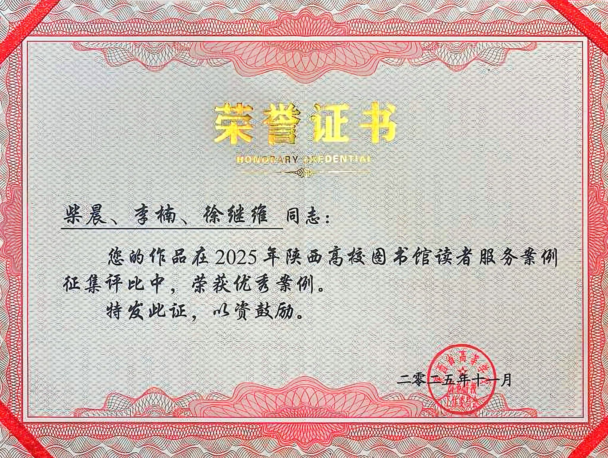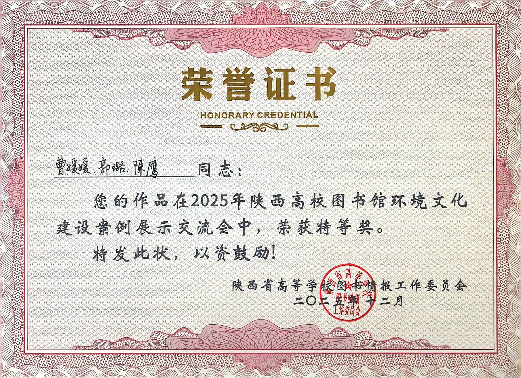 12月17日,在西北大学举办的陕西高校图书馆环境文化建设案例展示交流会上,经陕西省普通本科高等学校图书情报工作委员会组织,评审专家对初审筛选的63个入围案例进行现场交流。KY开元推送的《以历史溯峥嵘岁月、以馆藏承胜利荣光——图书馆纪念中国人民抗日战争暨世界反法西斯战争胜利80周年活动案例》荣获陕西高校图书馆环境文化建设案例大赛特等奖。该案例依托重要时间节点,深挖馆藏文献资源,筹划系列阅读推广活动,提升了图书馆大型活动筹划能力,强化了育人服务价值。