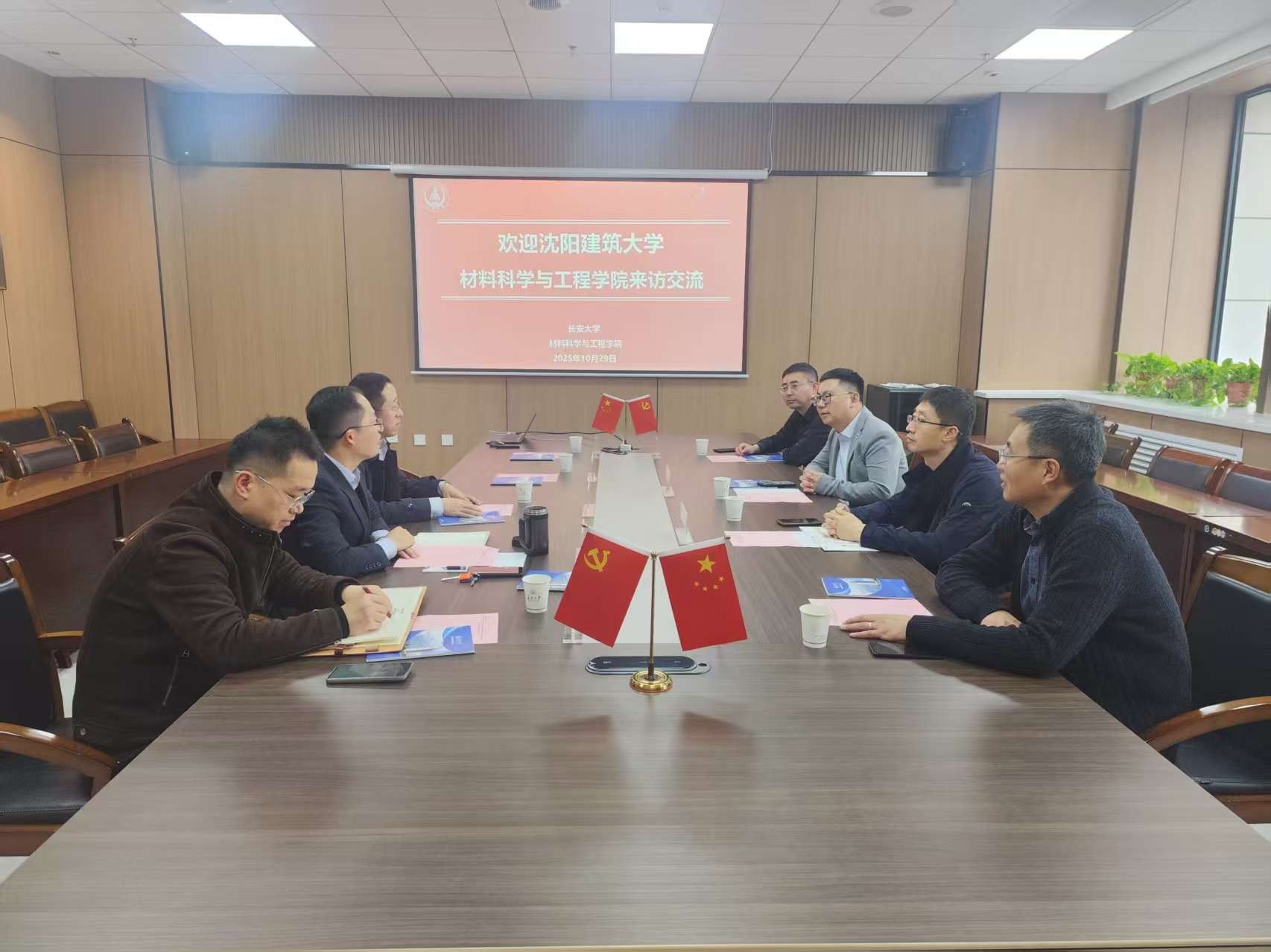 10月29日下午,沈阳建筑大学材料科学与工程学院副院长(主持工作)唐宁、党委副书记戚爰伟、副院长戴民、党委委员李晓一行4人到材料学院调研交流,双方在北校区致远大厦材料学院401会议室举行座谈会。KY开元集团官网研究生院院长王来军,材料学院党委书记王振军、院长肖月、党委副书记宁育国、学院办公室主任徐伟参加座谈。会议由肖月主持。