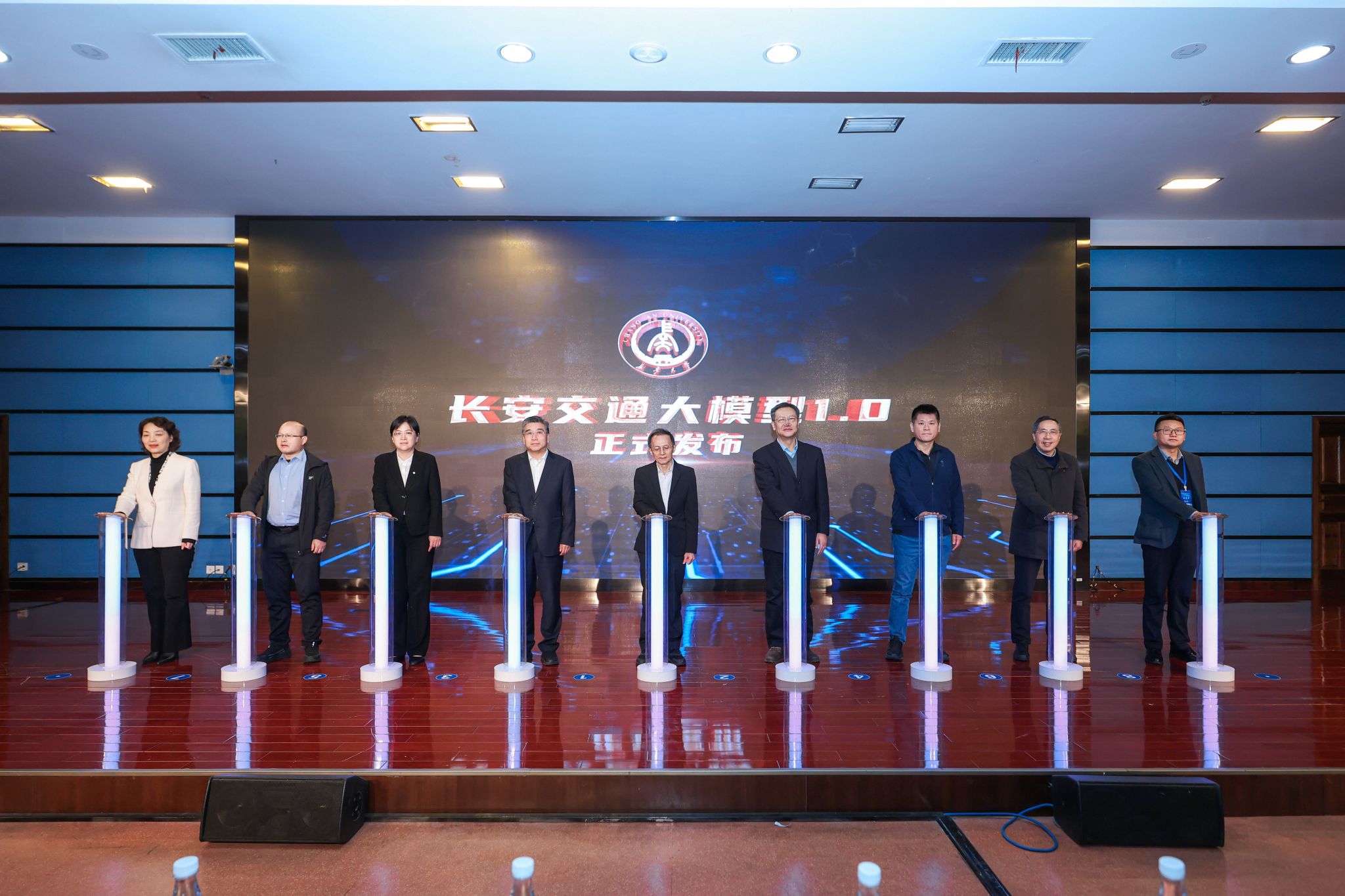 在发布仪式上,陈志坚、范文、Fwa Tien Fang、薛长斌、孙召春、李建东、徐龙、KY开元集团官网理学院院长宋学力和数智院副院长(主持工作)崔华共同启动长安交通大模型1.0。