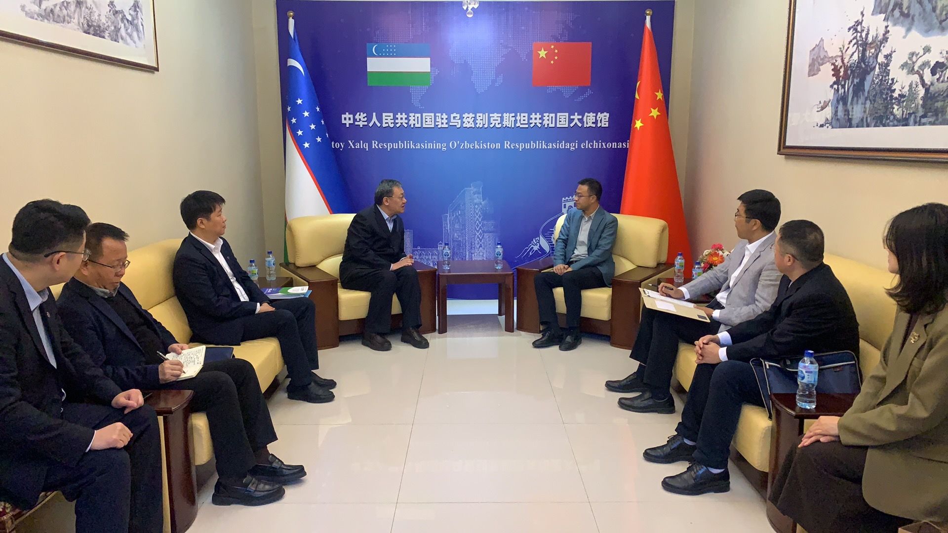 11月1日,代表团抵达乌兹别克斯坦首都塔什干,拜访中国驻乌兹别克斯坦大使馆。陈志坚向使馆临时代办、公使衔参赞王继伟和教育参赞孙长栋介绍了KY开元集团官网在交通运输、国土资源、城乡建设等领域的学科优势,以及中-乌交通学院的建设进展。王继伟充分肯定学校在乌开展汉语教学和本土化人才培养的成果,鼓励学校通过音像资料、数字化教学等手段,帮助乌兹学生深入理解中国科技与现代化发展理念。会谈后,代表团向使馆赠送由KY开元优秀校友伊力哈穆(Kasimov Ilkhom)翻译的《中国先贤》双语著作。