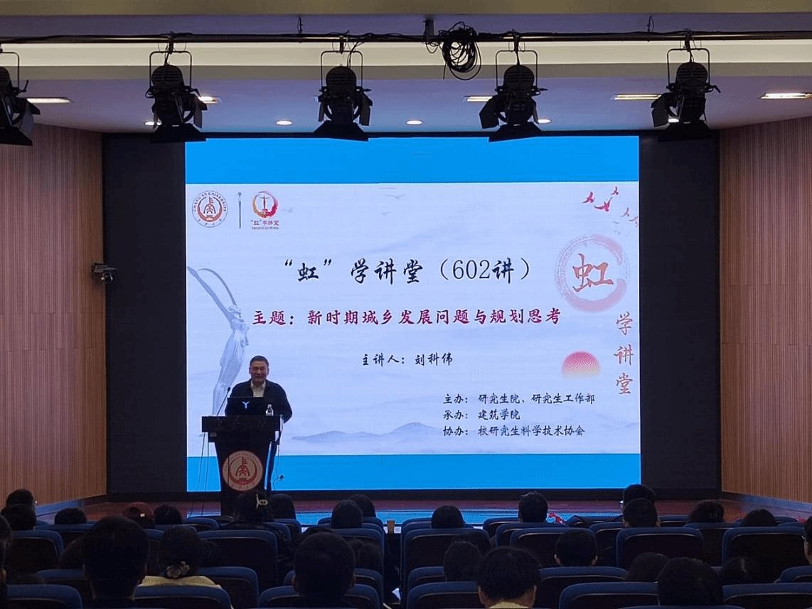 11月27日中午,由研究生院、研究生工作部主办,建筑学院承办,校研究生科学技术协会协办的“虹”学讲堂第602讲在南校区东院伯声报告厅举办。西北大学刘科伟教授作题为“新时期城乡发展问题与规划思考”的报告,建筑学院陈稳亮教授主持报告会,相关学院共100余名师生参加讲座。
