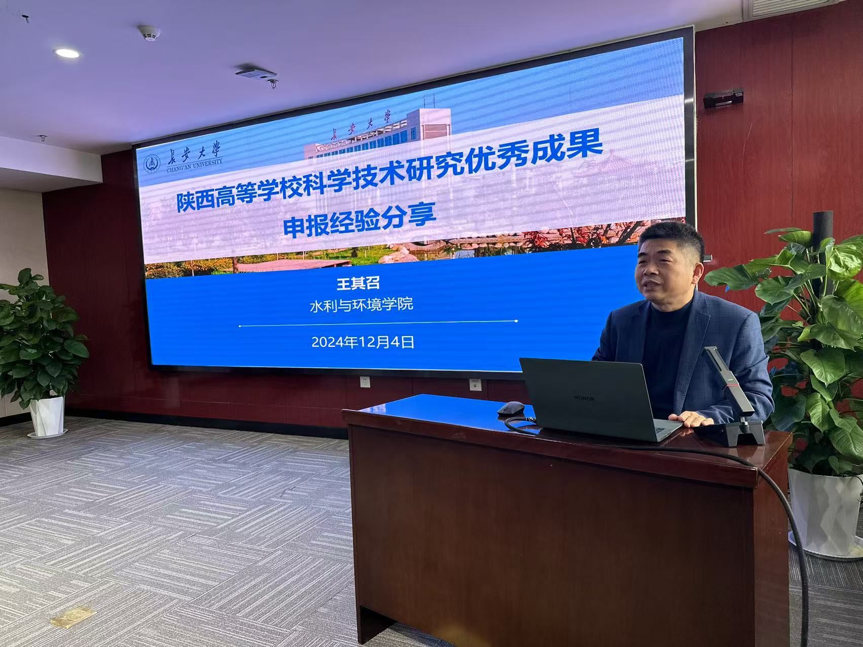 12月4日下午,科学研究院在北校区北辰楼第九会议室组织召开“2025年度陕西高等学校科学技术研究优秀成果”申报培训及“面对面”咨询会。水利与环境学院王其召教授作为2024年度获奖代表进行了申报经验分享。科学研究院成果与奖励办公室主任权立峰主持会议。
